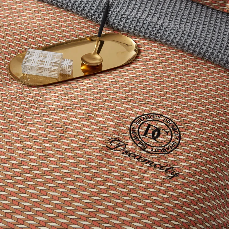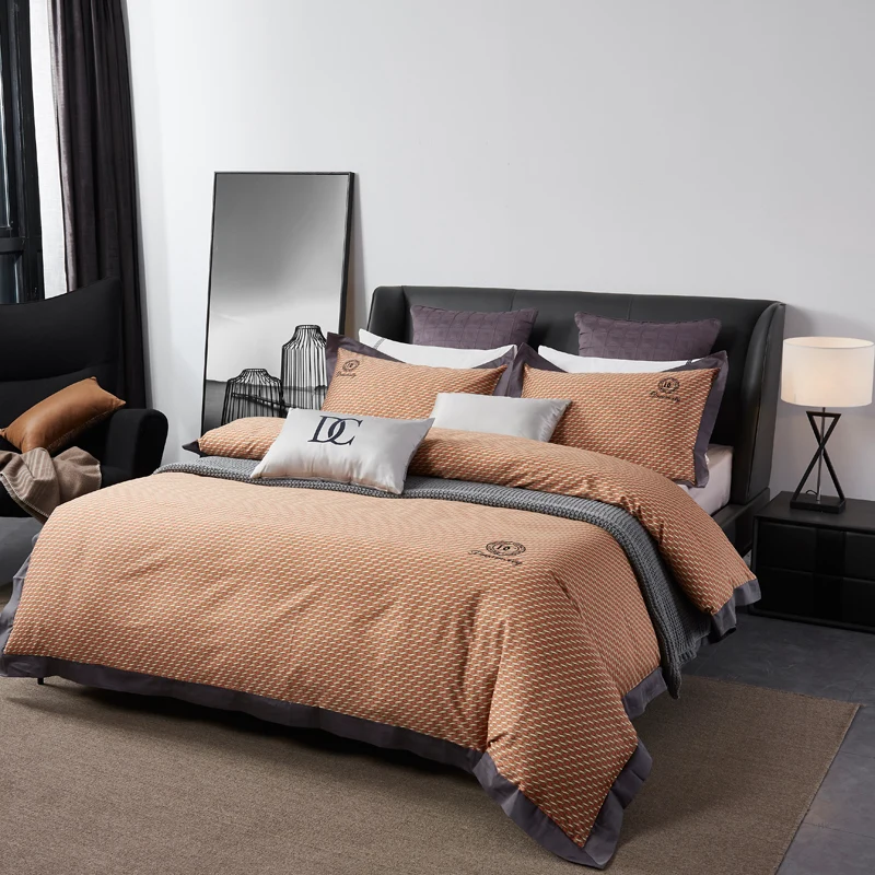 Product Name: نمط الأعمال الحديثة 4 قطعة مجموعات الفراش الفاخرة البرتقال هندسية الطباعة الرقمية أغطية سرير مجموعة الملكة الملك الحجم 100% القطن المصري